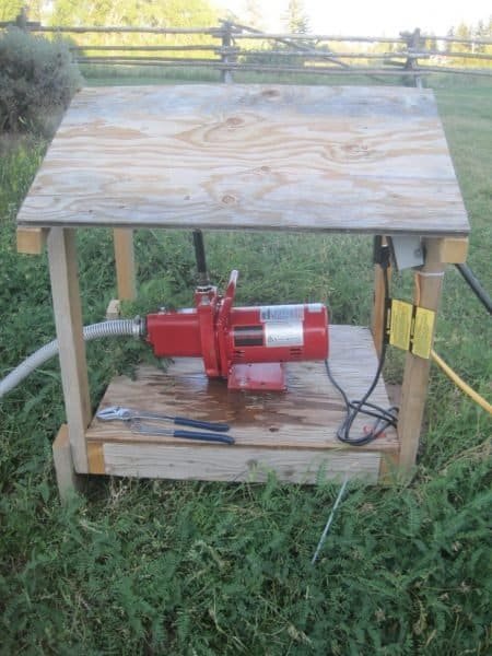 We built a small wooden shelter for our pump to protect it from the direct sunshine. This works very well as the pump is bolted to the floor of the shelter.