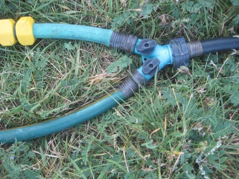 - A Short Extension Hose (ours is black, but this is a good one ) which attaches directly to the pump and then to your hoses leading to the sprinklers