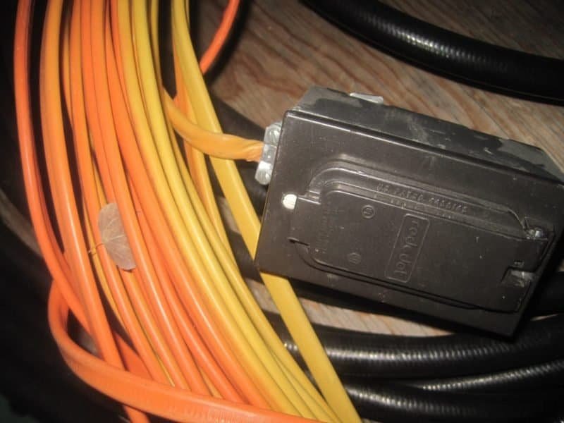 We used a heavy wire with a 3-way ground plug-in on one end and an outlet box on the other end. We made this DIY heavy gauge wire that is rated for outdoor use.