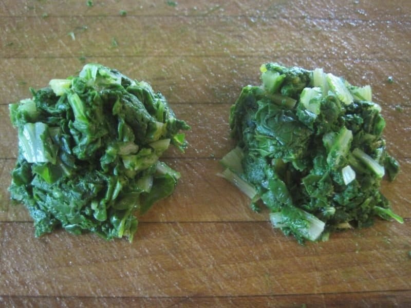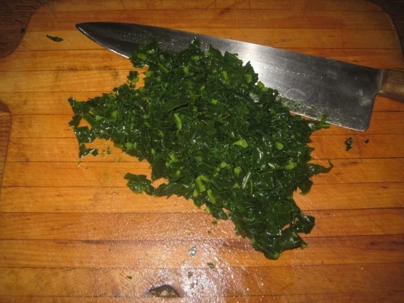 - Strain the kale and squeeze as much water out of it as possible. {I like to take about 1/2 cup of the cooked kale and press or squeeze out the extra water.}