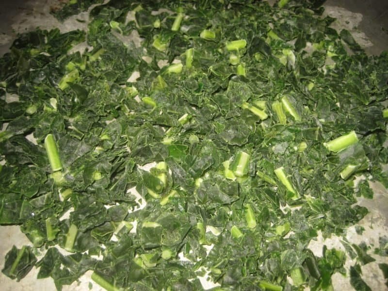 Blanching: this step actually is important when freezing kale as blanching stops the enzymatic activity in the kale. Some may say blanching is not necessary, but believe me, I learned the hard way. I froze a bunch of broccoli and spinach without blanching, only to have both the broccoli and spinach lose their bright green color and tenderness. Blanching retards further deterioration of most fruits and vegetables.